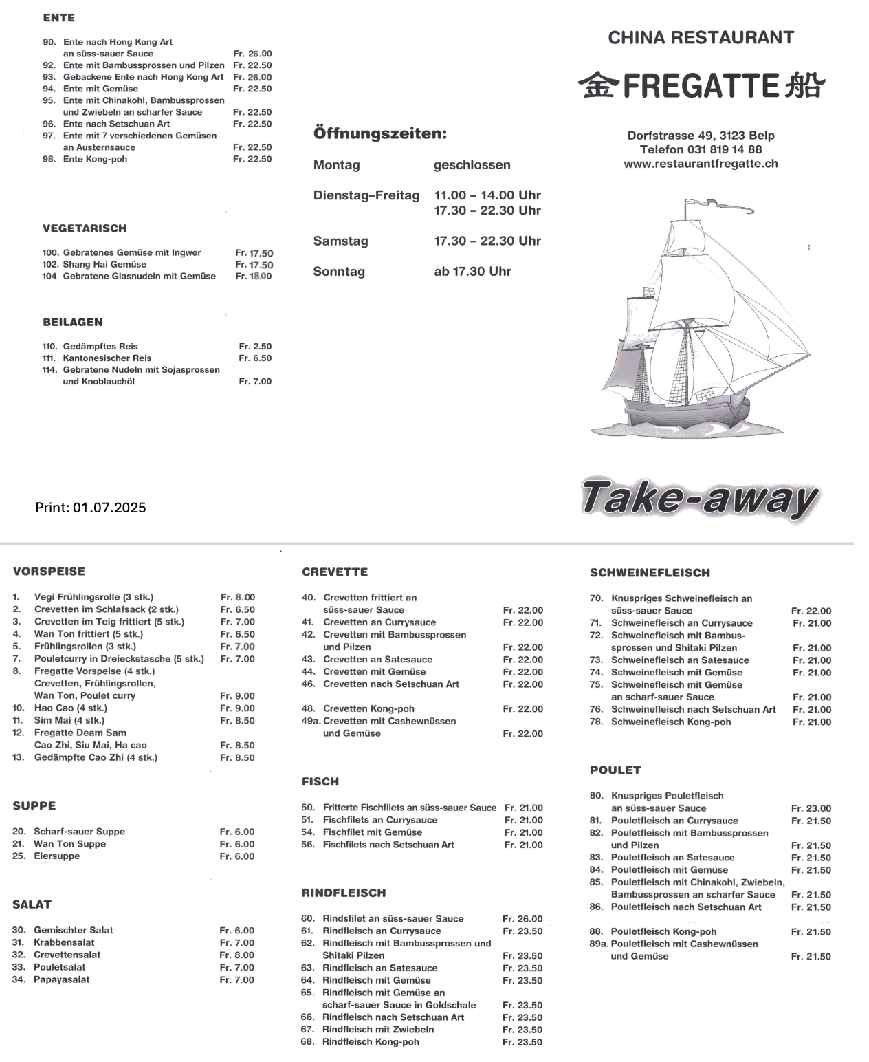 In gepflegter Ambiance servieren wir Ihnen gerne mit viel Liebe und Sorgfalt angerichtete chinesische Speisen. Unsere Menus und alle à la carte Gerichte werden immer frisch zubereitet! Wir sind ein kleines Restaurant. Deshalb bitten wir um telefonische Reservation (Tel. 031 819 14 88).
